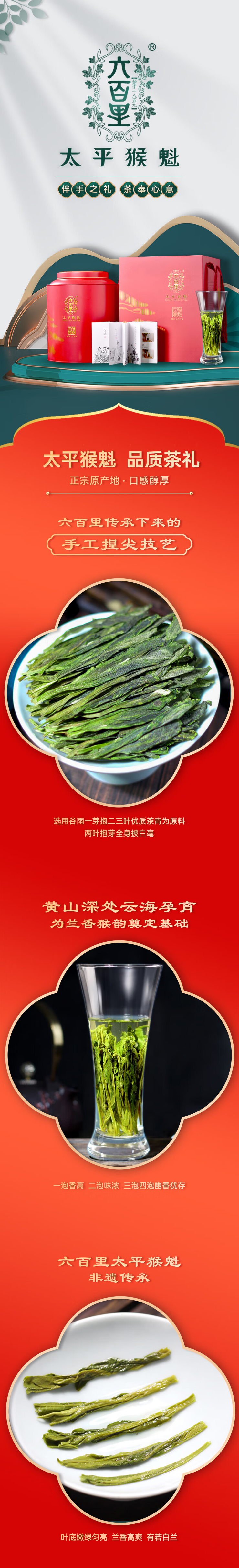 六百里太平猴魁手工捏尖鴻運(yùn)大紅桶250g禮盒裝